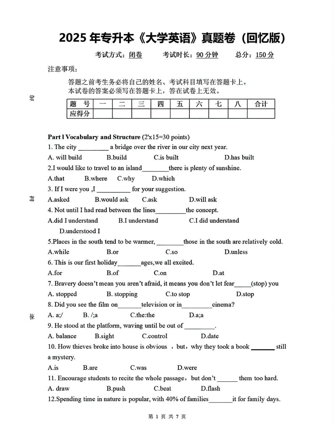 2025年湖南省专升本英语考试已然落下帷幕,此次考试真题对于未来备考的同学来说,有着极高的参考价值。现在,让我们一同深入分析这份真题卷,探寻其中的命题规律与备考要点。